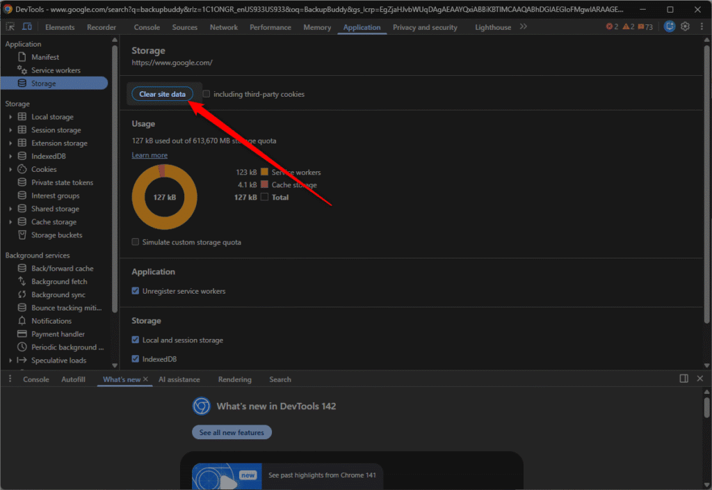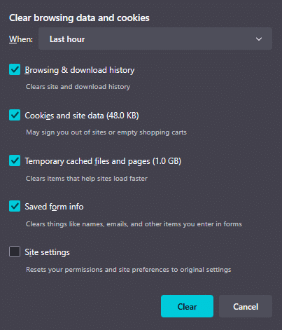 This is more complicated, but it just clears one site. Do this first so you don’t have to clear everything.