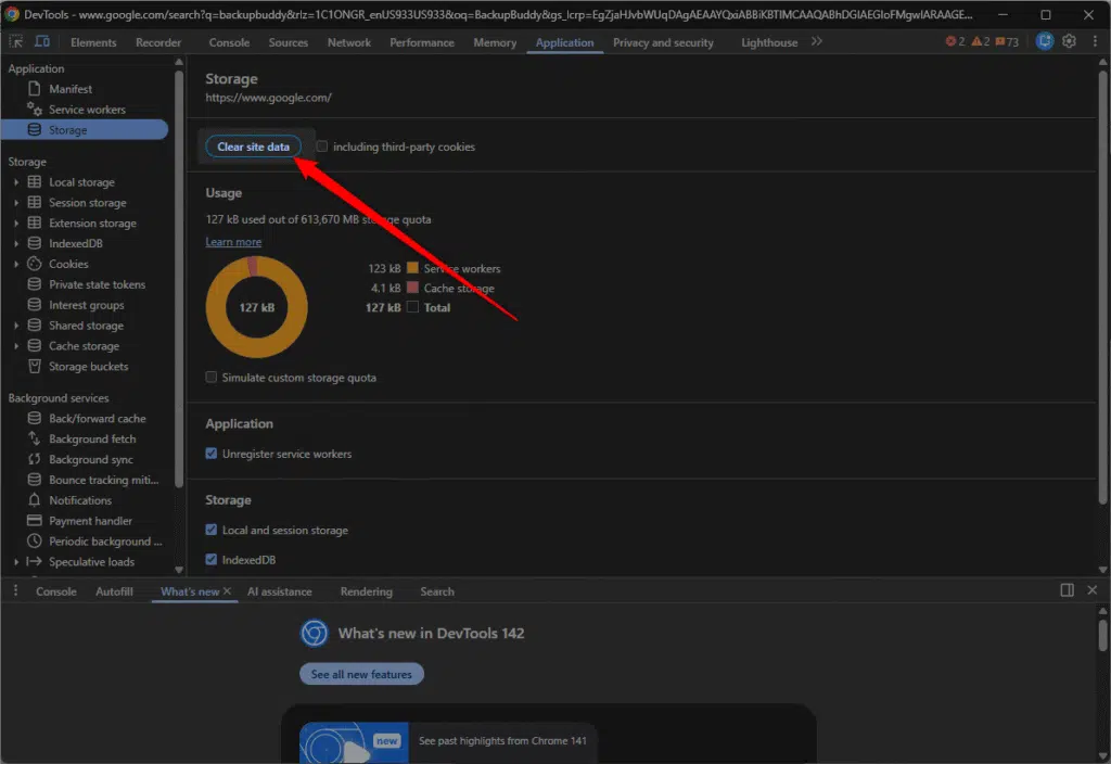 This is more complicated, but it just clears one site. Do this first so you don’t have to clear everything.